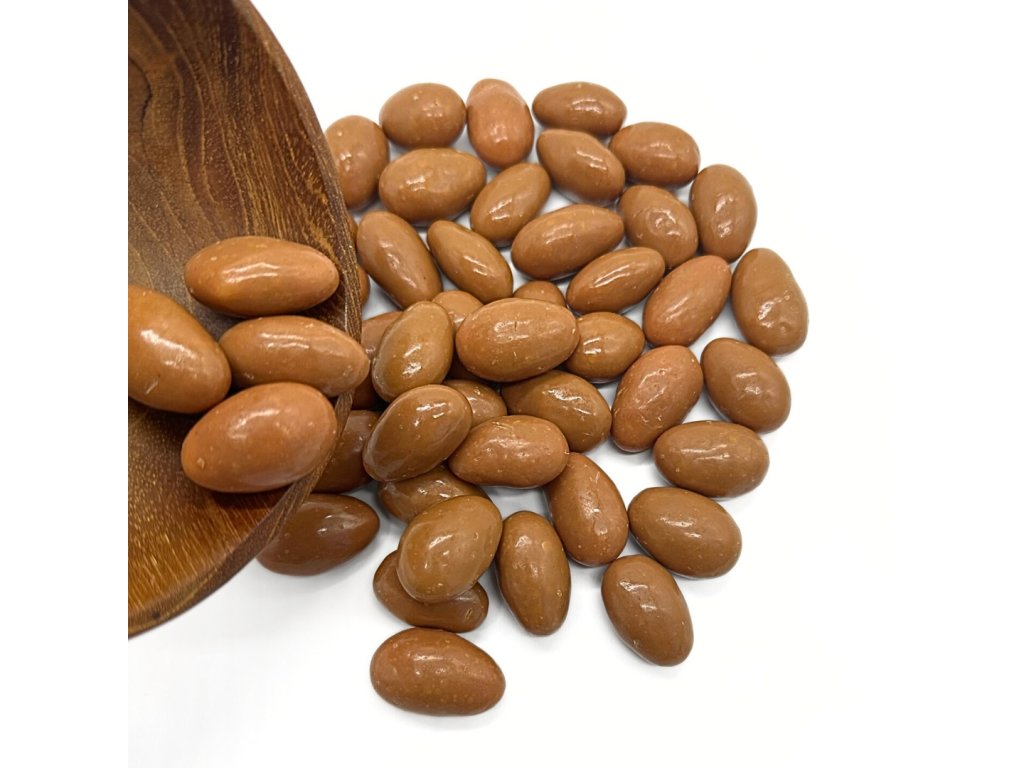 Zloženie: mandle Non pareil, biela čokoláda (cukor, kakaové maslo, sušené plnotučné mlieko, emulgátor, sójový lecitín, aróma vanilín), cukor, glukózový sirup, karamel z cukru, soľ.