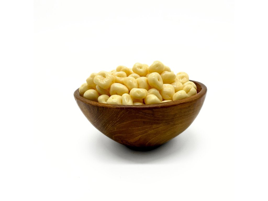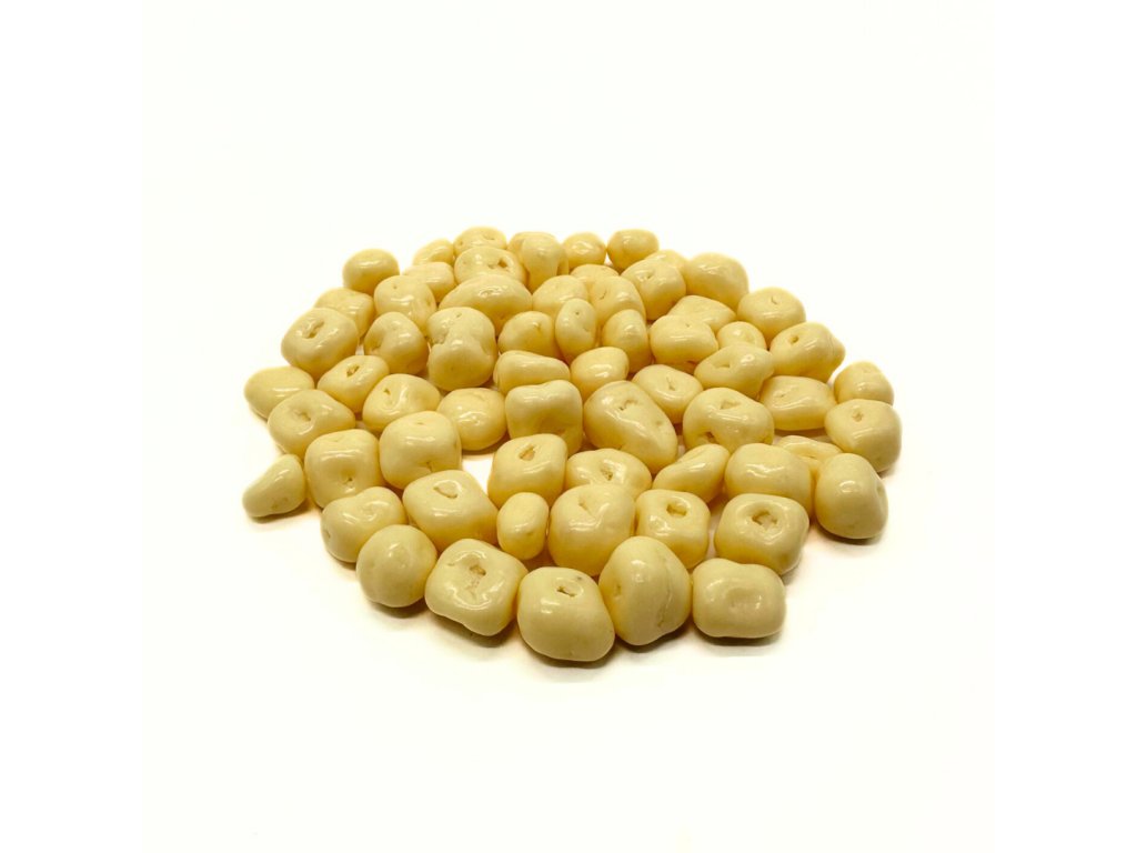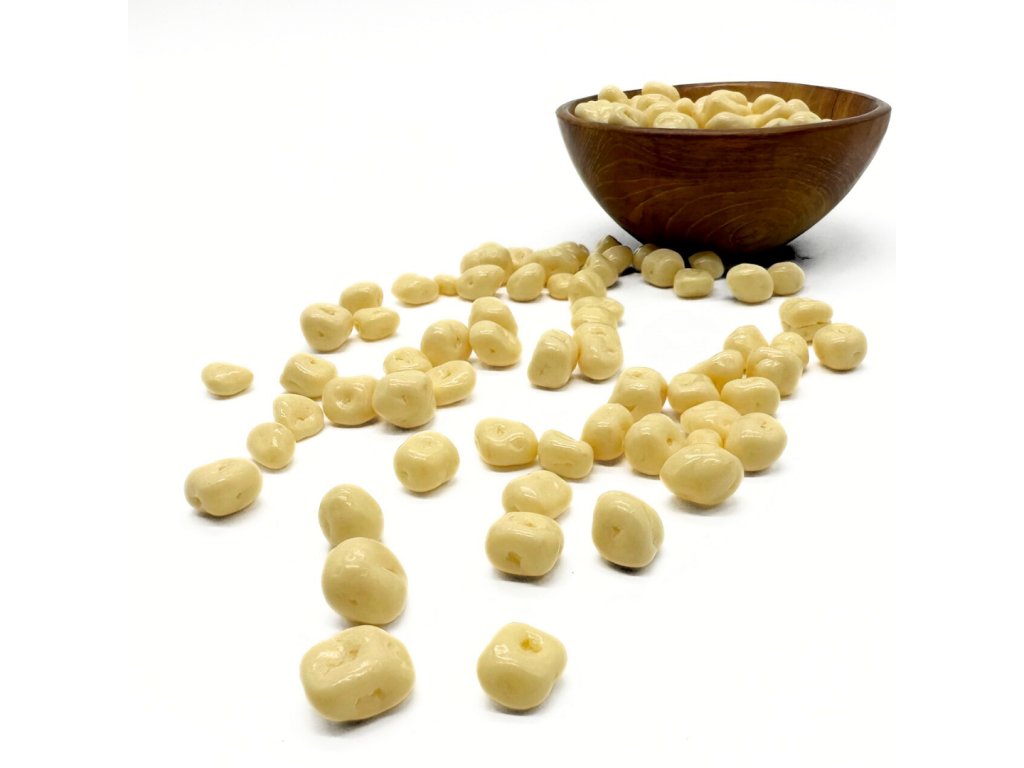 Sušený ananás obaľovaný jogurtovou polevou.