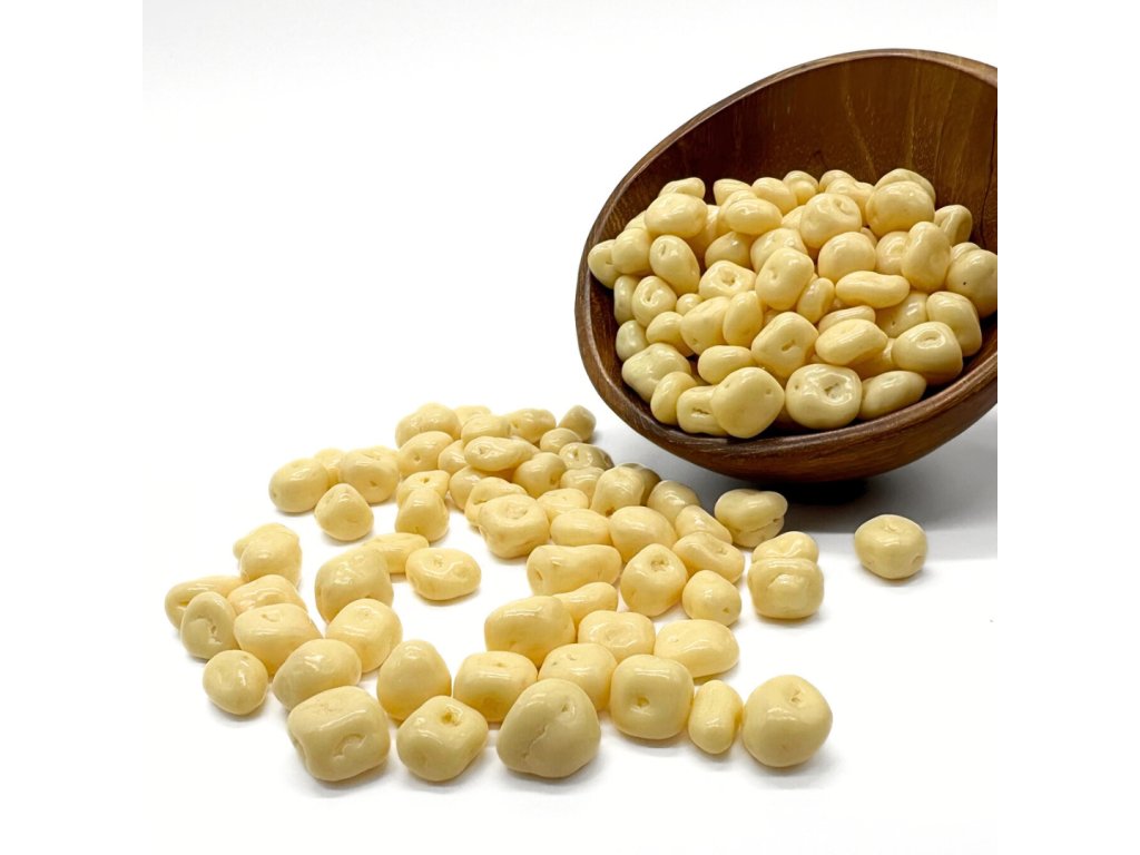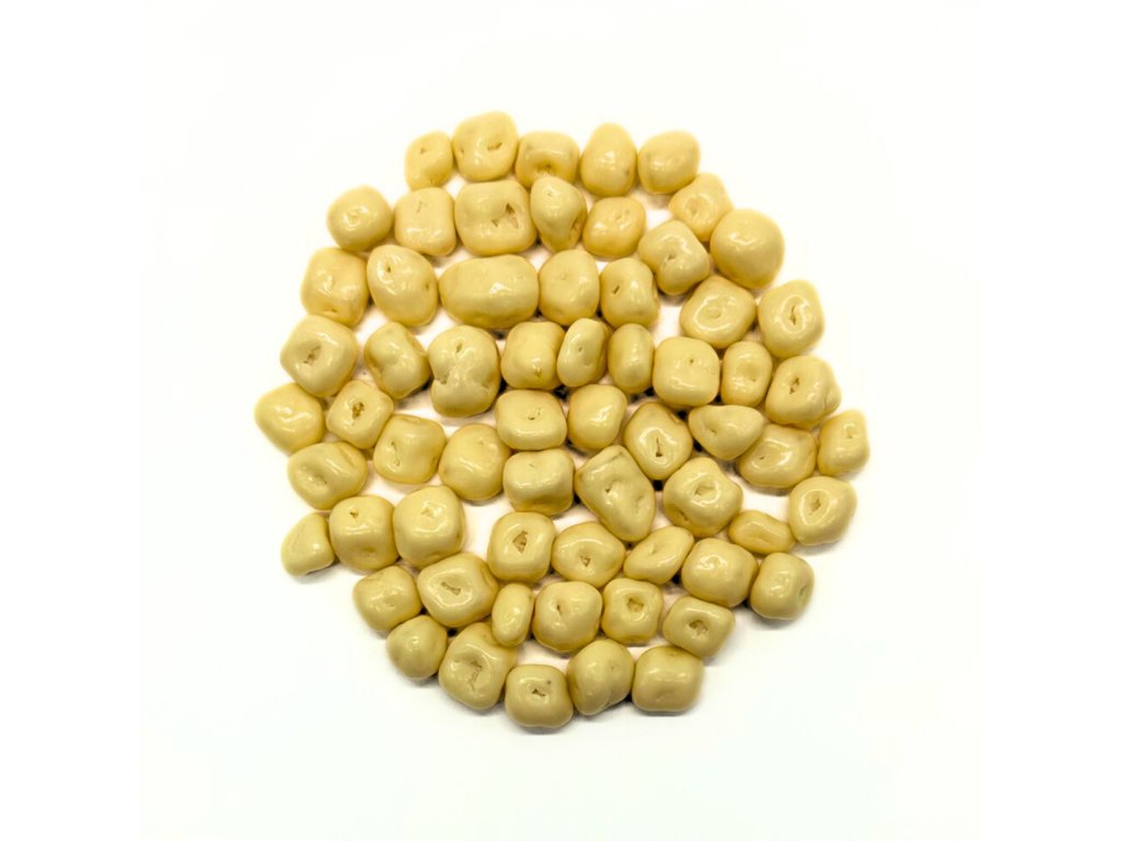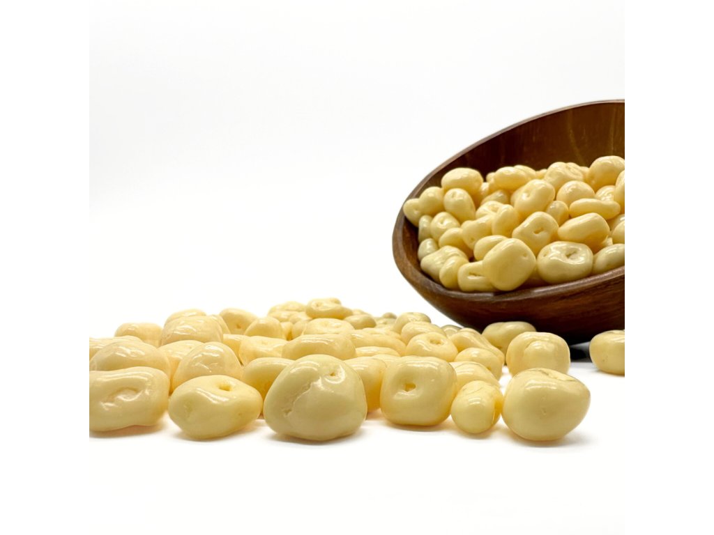 Sušený ananás obaľovaný jogurtovou polevou.