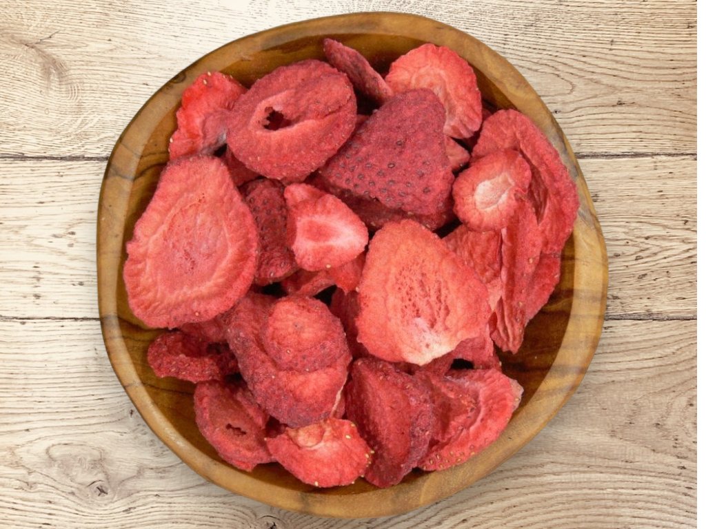 Mrazom sušené jahody si Vás získajú pre svoju intenzívnu a sladkú chuť a taktiež musíme spomenúť ich úžasnú vôňu. Jahody si Vás získajú najmä svojou vôňou a chuťou. Každá jedna jahoda je veľmi chutná, chrumkavá, preto budete musieť dávať veľký pozor, aby Vám vrecko vydržalo aspoň do večera. Sú chrumkavé, sladké a čo je najlepšie, môžete ich mať u seba v kuchyni celoročne! Nielenže sú chutné, ale majú toľko pozitív, že ak ste ich doteraz príliš nejedli, mali by ste začať. Jahody zďaleka nie sú len obľúbeným letným ovocím, na ich nezameniteľnú chuť nadväzujú aj vysoké množstvá vitamínov, minerálov a vlákniny.