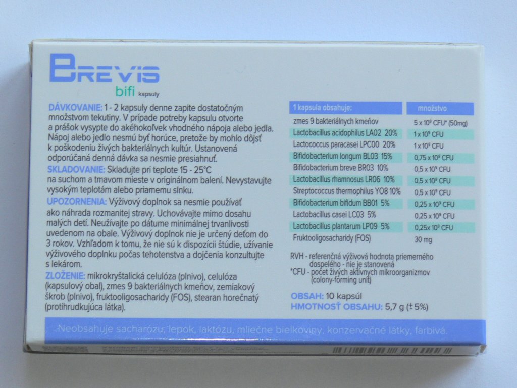 Zloženie: mikrokryštalická celulóza (plnivo), celulóza (kapsulový obal), zmes 9 bakteriálnych kmeňov, zemiakový škrob (plnivo), fruktooligosacharidy (FOS), stearan horečnatý